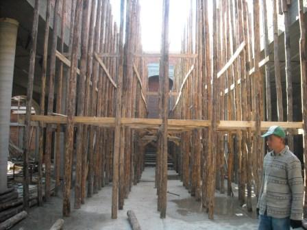 - murowanie ścian kościoła i tworzenie belek